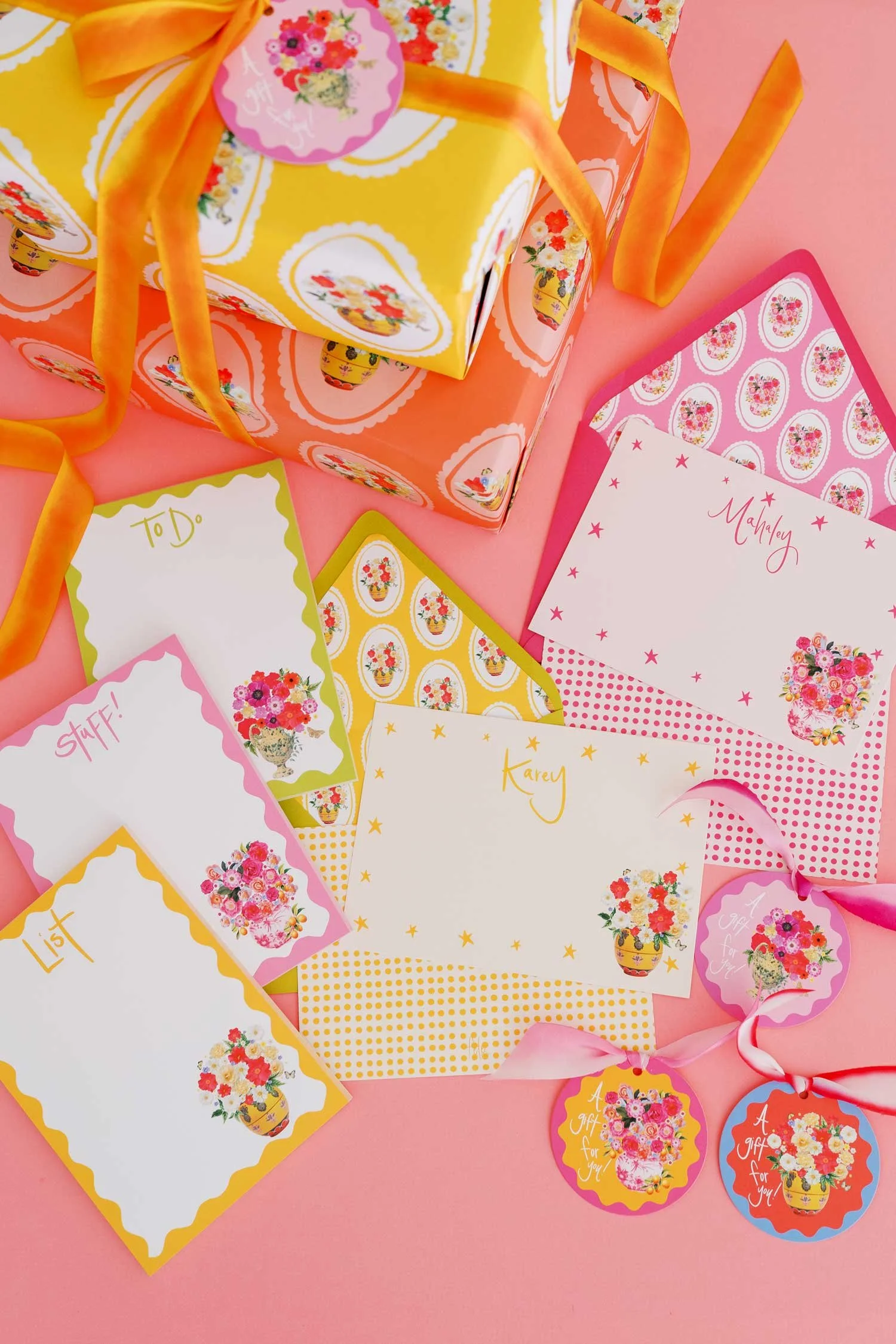 A whimsical, spring-inspired collection of party and paper goods featuring Karey’s fun florals!